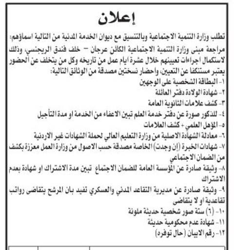 دعت عدداً من الوزارات والمؤسسات الرسمية والبلديات بالتنسيق مع ديوان الخدمة المدنية اليوم الثلاثاء، مرشحين لإجراء المقابلات الشخصية واستكمال إجراءات التعيين.
