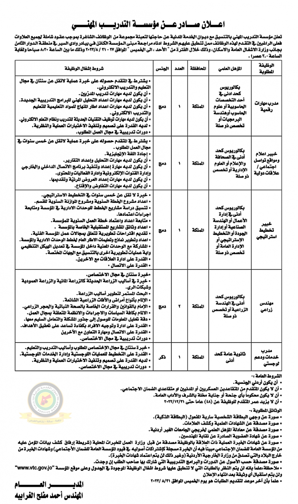 وأعلن عن وظائف شاغرة بالتنسيق مع الوزارات والمؤسسات الحكومية.