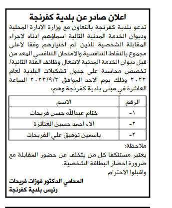 وظائف شاغرة ومدعوون للتعيين - أسماء