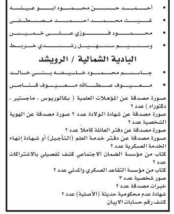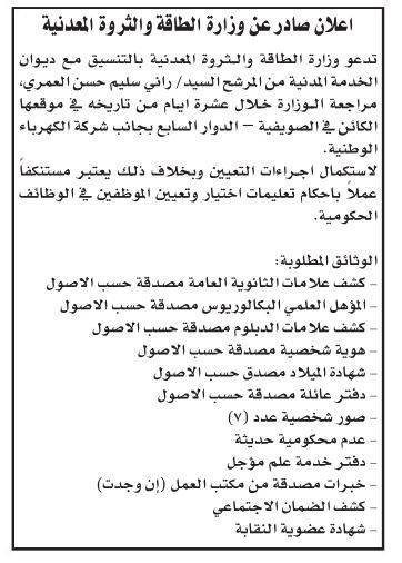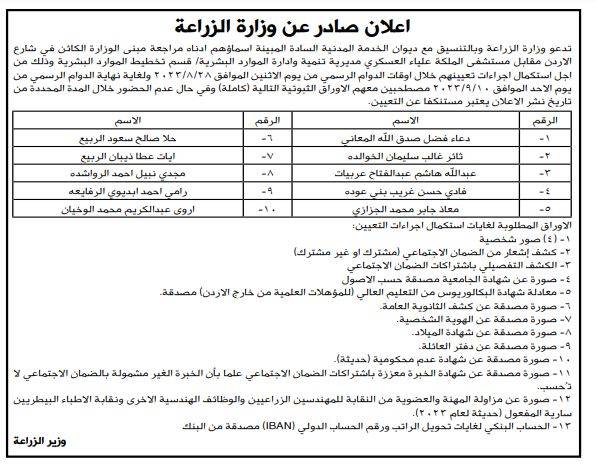أعلنت عدداً من الوزارات والبلديات والمؤسسات الحكومية، اليوم الاثنين، بالتنسيق مع ديوان الخدمة المدنية، عن حاجتهم لتعبئة وظائف شاغرة، كما دعت عددا من المرشحين لاستكمال إجراءات التعيين.