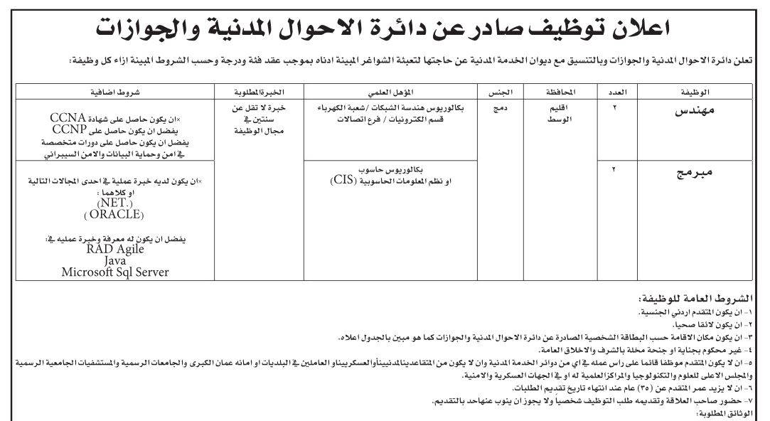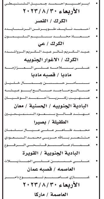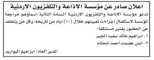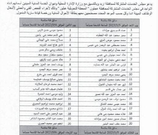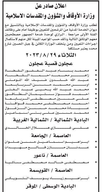 ودعت وزارة الأوقاف والشؤون والمقدسات الإسلامية وبالتنسيق مع ديوان الخدمة المدنية المرشحين للتعيين بوظيفة إمام على وظائف الفئة الأولى مراجعة مبنى الوزارة الكائن في جبل الحسين/شارع الرازي/وحدة خدمة الجمهور لاستكمال اجراءات التعيين.