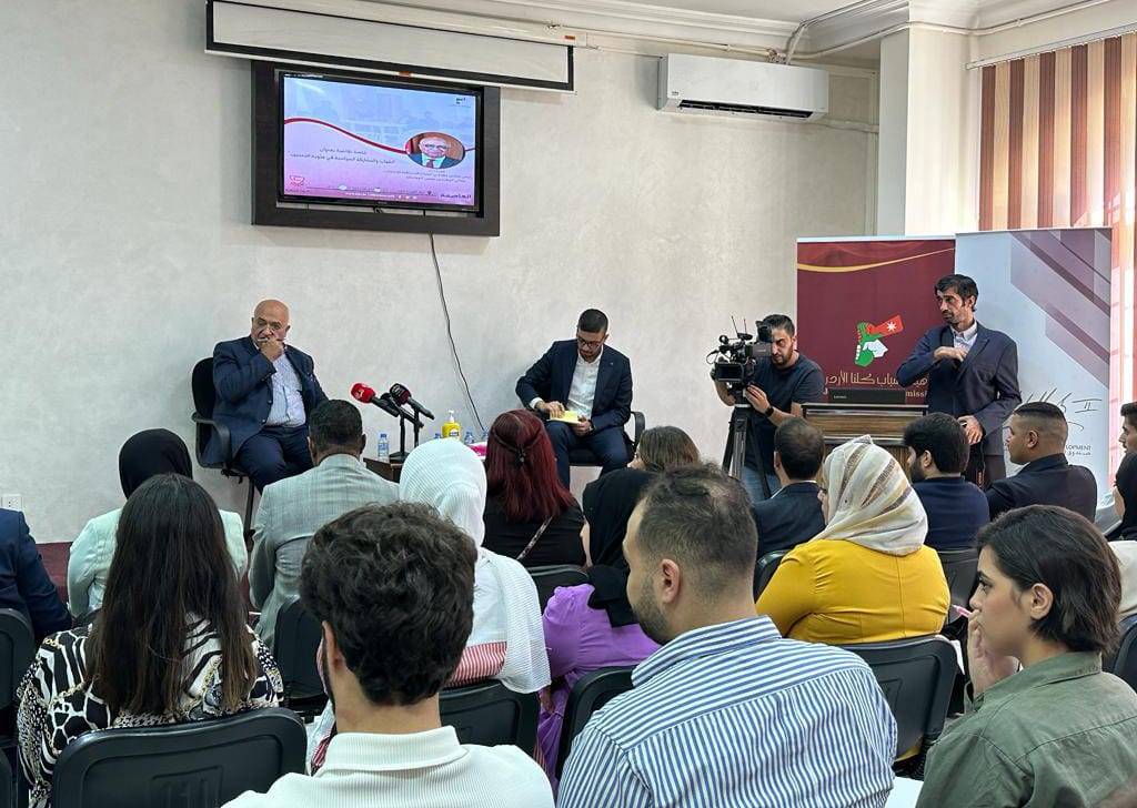 نظمت هيئة شباب كلنا الأردن الذراع الشبابي لصندوق الملك عبدالله الثاني للتنمية، جلسة نقاشية تحت عنوان "الشباب والمشاركة السياسية في مئوية الدولة الأردنية"، وتحدث فيها معالي المهندس موسى المعايطة رئيس مجلس مفوضي الهيئة المستقلة للانتخاب، وذلك ضمن إطلاق المرحلة الأولى من مشروع التمكين السياسي والديمقراطي "أدوار تنتظرنا"، في مقر هيئة شباب كلنا العاصمة/خلدا.