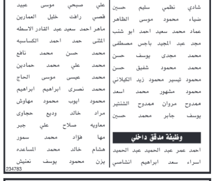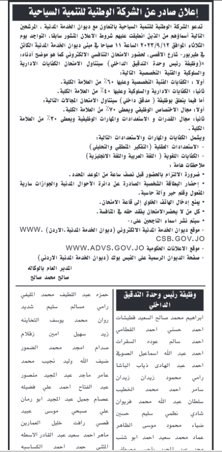 دعا ديوان الخدمة المدنية بالتنسيق مع عدد من الوزارات والمؤسسات الحكومية الأشخاص التالية لإجراء الاختبار التنافسي.