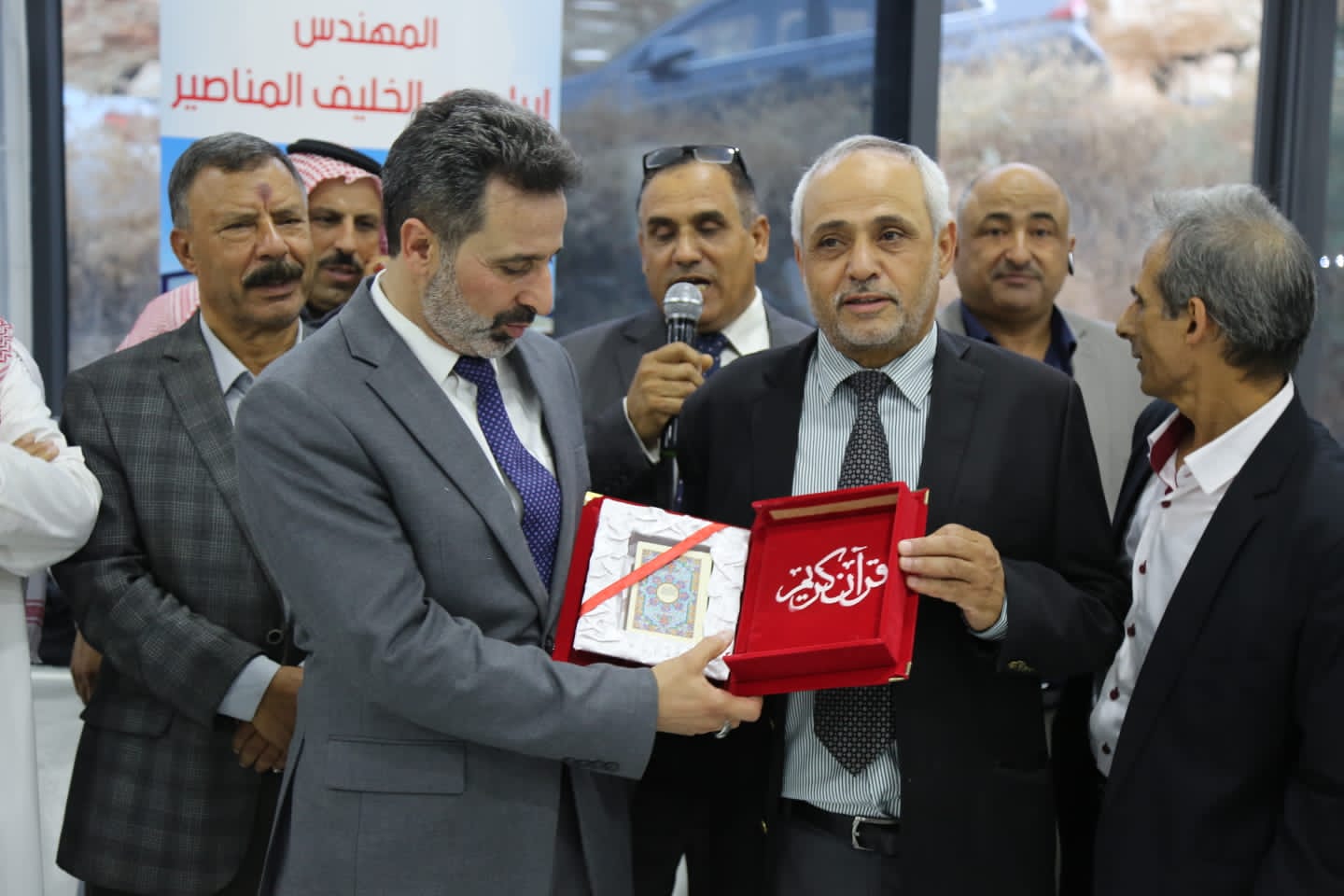 ختاما قدم الحضور وديوان المناصير هدية لراعي الحفل المهندس إبراهيم الخليف المناصير ذات معنى معنوي وهي المصحف الشريف ، وقدموا شكرهم الجزيل للمهندس المناصير على جهوده الدائمة في خدمة ورفعة أردننا الغالي .