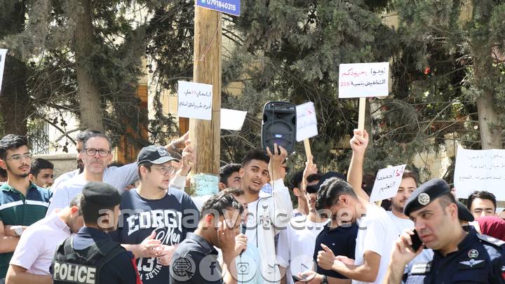 ورفع الطلبة لافتات "لا لا للتخصيص وين رايح بالتدريس" و"يا وزير اسمعنا بدنا الحق تبعنا" و"مش لازم تظلمنا ولا حتى تجبرنا".