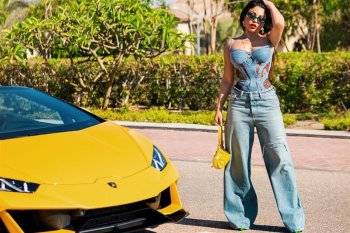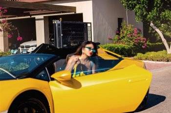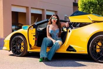 ولفتت سيارتها الفاخرة "لامبورغيني" الصفراء اللون، التي ظهرت أمامها بالصور، أنظار الجميع.