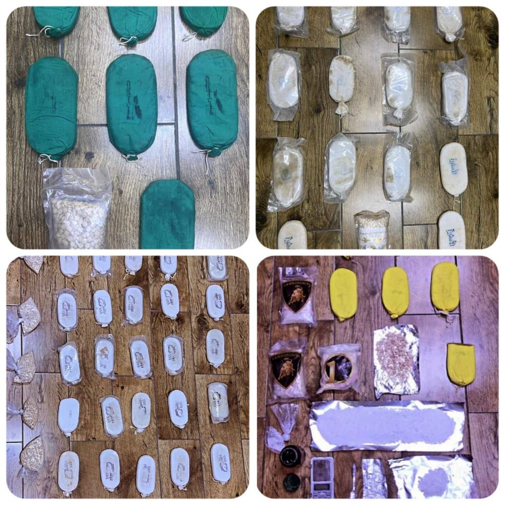 وفي احدى مناطق البادية الشمالية وردت معلومات حول قيام مجهولين باخفاء كميات من المواد المخدرة ، إذ تم التوجه للمكان وبتمشيط المنطقة عثر على 184 كفاً من مادة الحشيش المخدرة و 14 الف حبة مخدرة والتحقيق جارٍ لتحديد هوية المتورطين بالقضية .