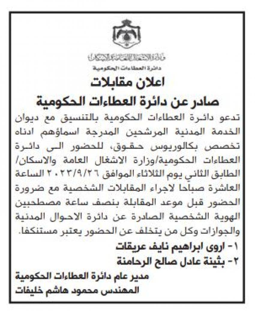 وظائف شاغرة في عدد من المؤسسات والدوائر الحكومية