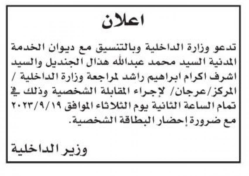 دعا ديوان الخدمة المدنية المرشحين المدرجة أسماؤهم أدناه لإجراء الامتحان التنافسي الالكتروني في عدة وزارات ومؤسسات حكومية .