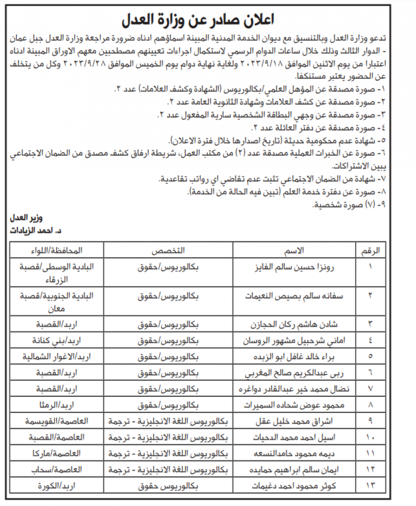 كما أعلن عن وظائف شاغرة بالتنسيق مع الوزارات والمؤسسات الحكومية .