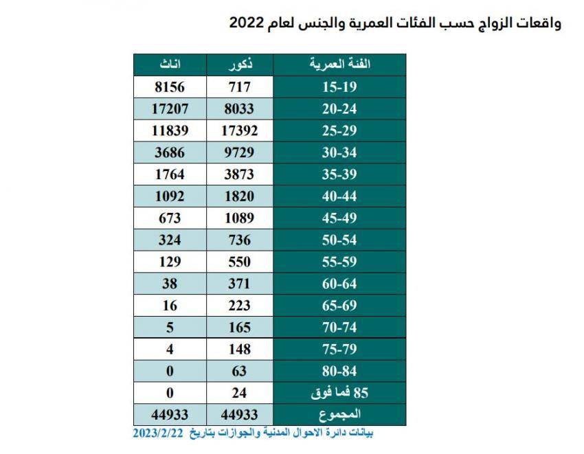 وسجل في المملكة العام الماضي 44 ألفا و933 حالة زواج لأردنيين.