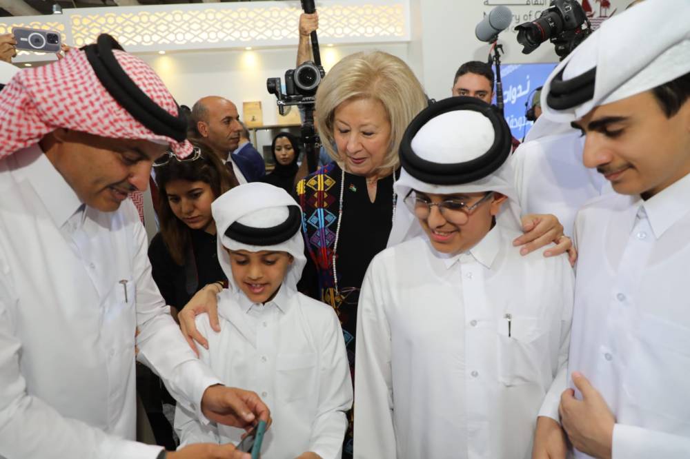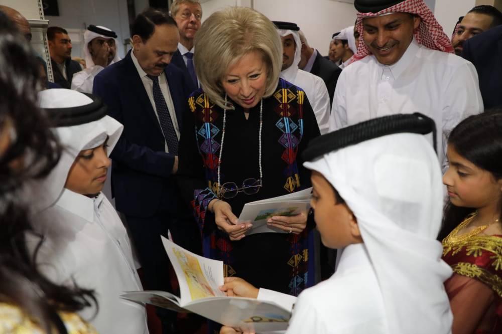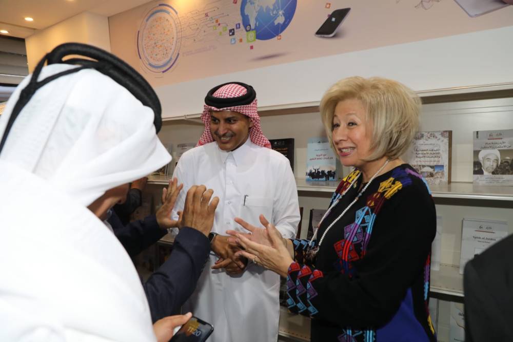 وبعد الافتتاح، جالت وزيرة الثقافة برفقة السفير القطري على أجنحة المؤسسات الثقافية القطرية المشتركة، وجناح دولة قطر ضيف شرف المعرض لهذا العام حيث استمعت من المشرف على الجناح، ومدير معرض الدوحة الدولي للكتاب جاسم البوعينين الى طبيعة المشاركة القطرية، وما يضمه الجناح من إصدارات وزارة الثقافة القطرية، ولوحات فنية لفنانين قطريين.
