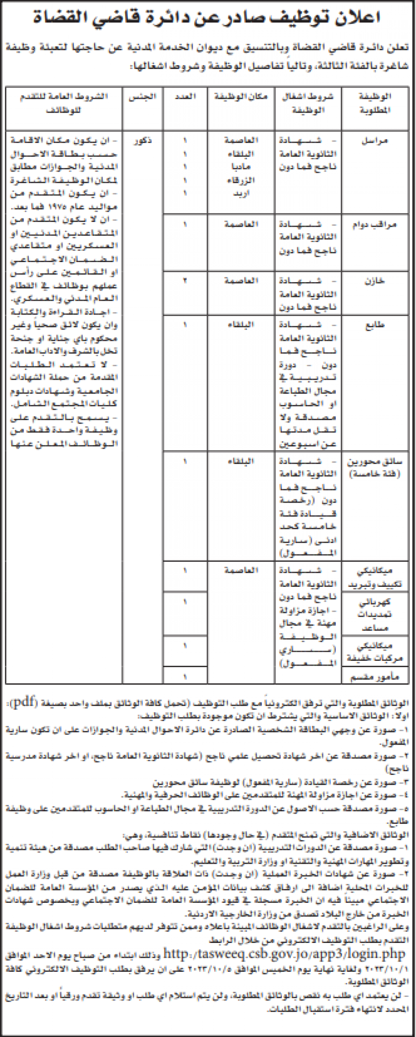 أعلنت عدد من المؤسسات الحكومية، اليوم الخميس، بالتنسيق مع ديوان الخدمة المدنية، عن حاجتها لتعبئة وظائف شاغرة.