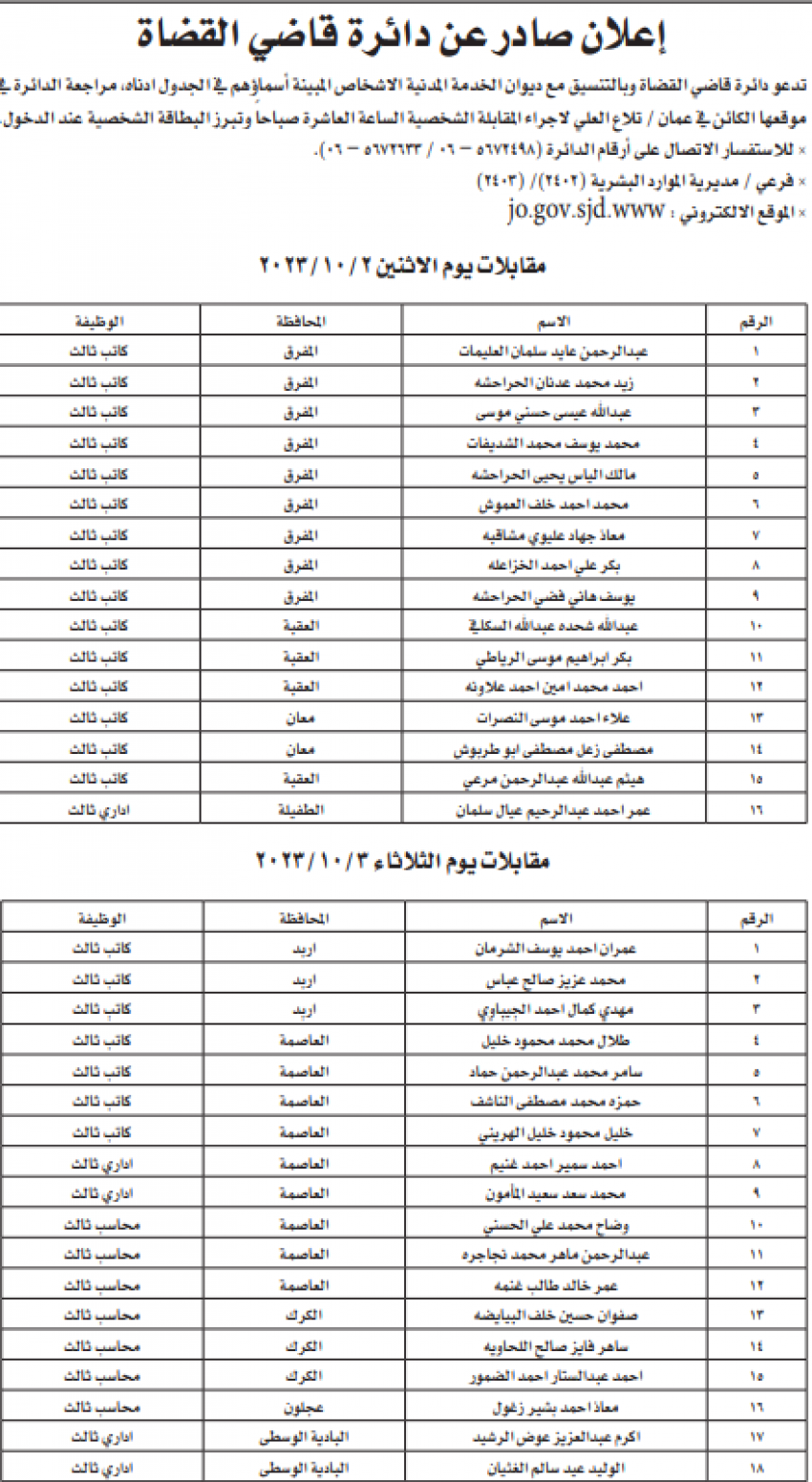 وظائف شاغرة ومدعوون لإجراء المقابلات (أسماء)