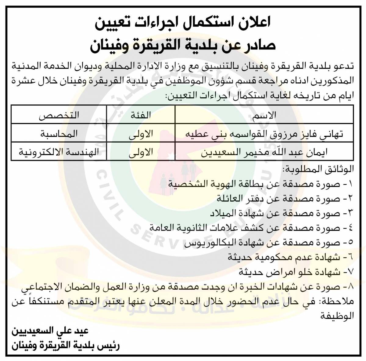 وظائف شاغرة ومدعوون للتعيين - أسماء