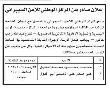 وظائف شاغرة ومدعوون لإجراء المقابلات الشخصية (أسماء)