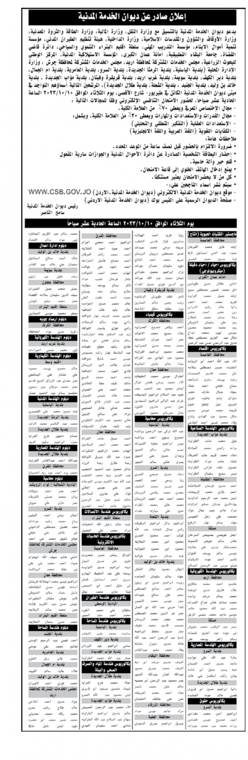 وجه ديوان الخدمة المدنية وبالتنسيق مع وزارات ومؤسسات حكومية، دعوة لمئات المرشحين للامتحان التنافسي، يوم الثلاثاء المقبل.