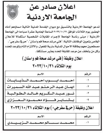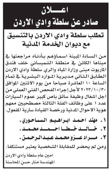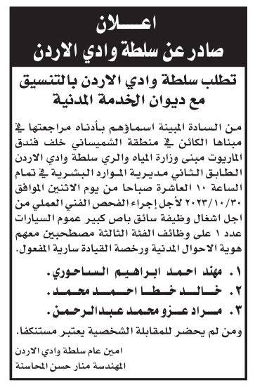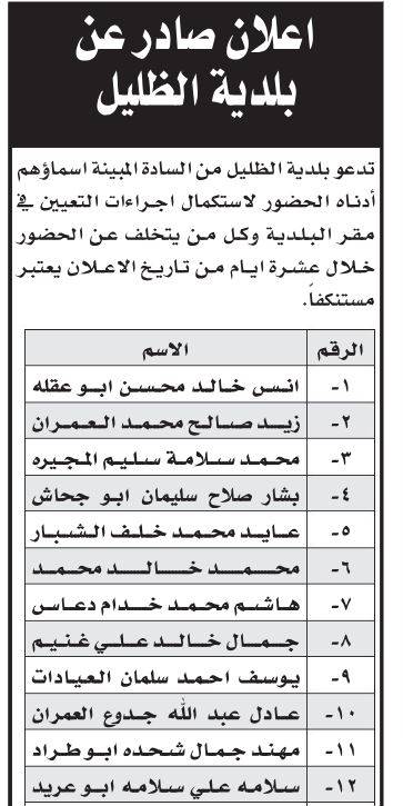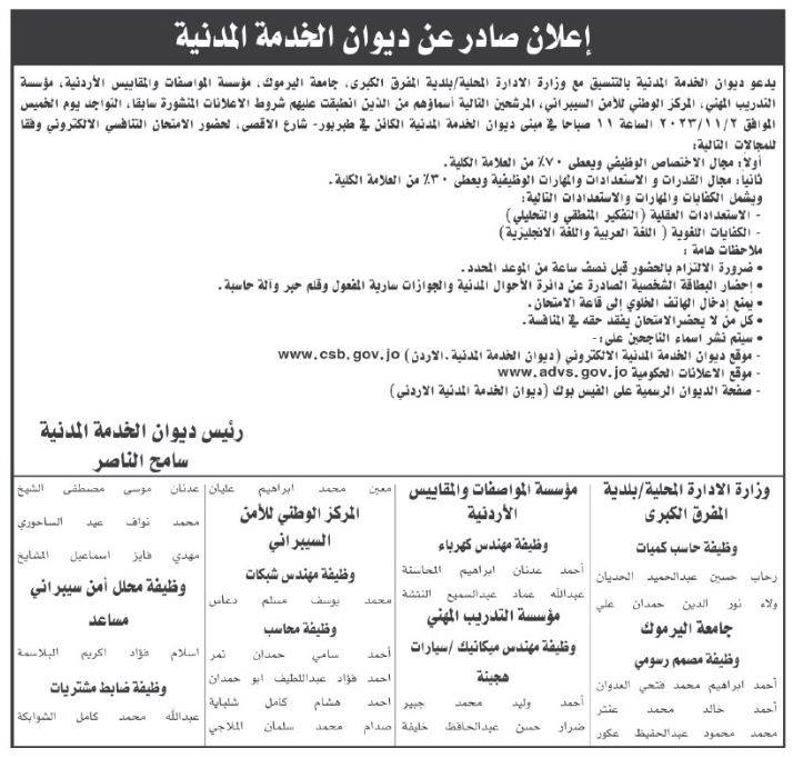 دعت عدداً من الوزارات والمؤسسات الرسمية والبلديات بالتنسيق مع ديوان الخدمة المدنية اليوم الأربعاء، مرشحين لإجراء المقابلات الشخصية ولحضور الامتحان التنافسي واستكمال اجراءات التعيين.