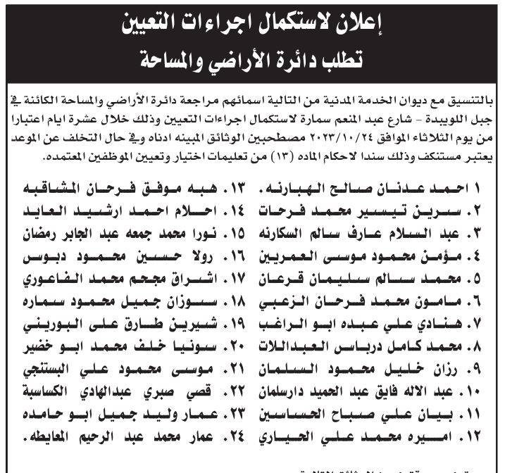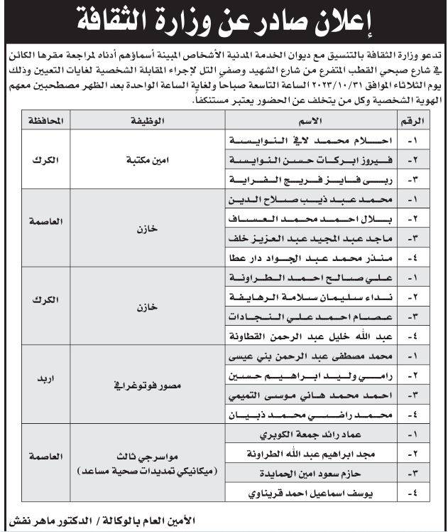 مدعوون لإجراء مقابلات شخصية والامتحان التنافسي (أسماء)