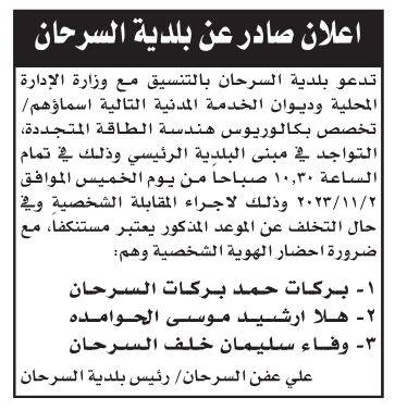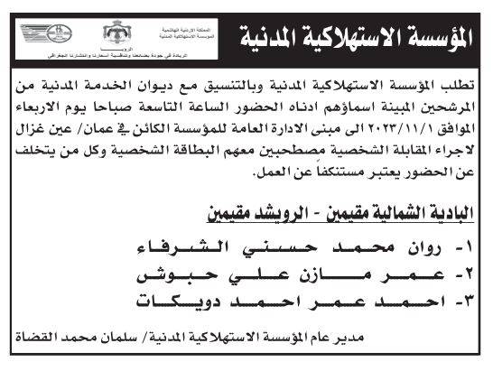 ووجه دعوة لعدد من المرشحين لإجراء المقابلات الشخصية.