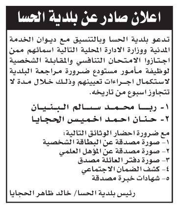 وظائف شاغرة ومدعوون لإجراء المقابلة الشخصية (أسماء)