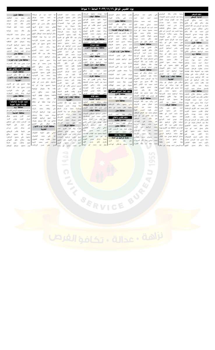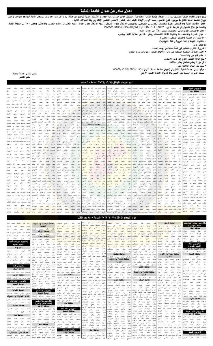 وجه ديوان الخدمة المدنية وبالتنسيق مع عدد من الوزارات والمؤسسات الحكومية، دعوة للأشخاص التالية لحضور الامتحان التنافسي.