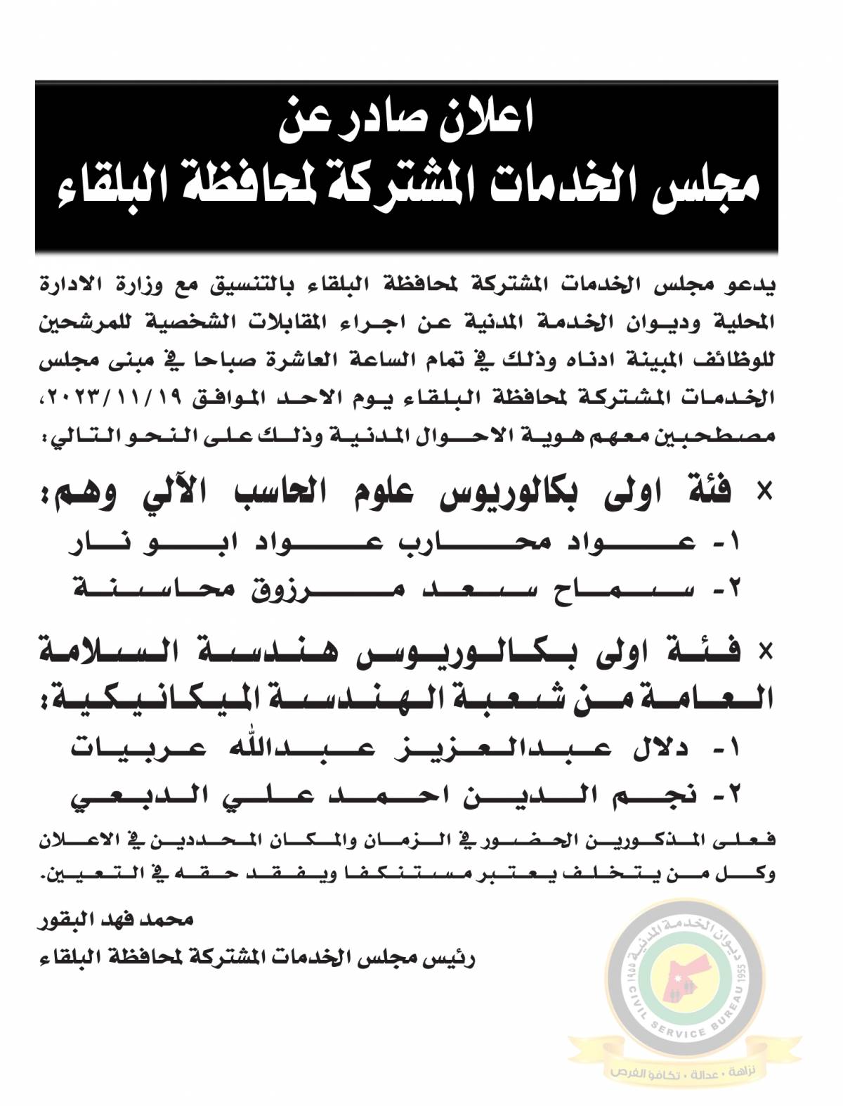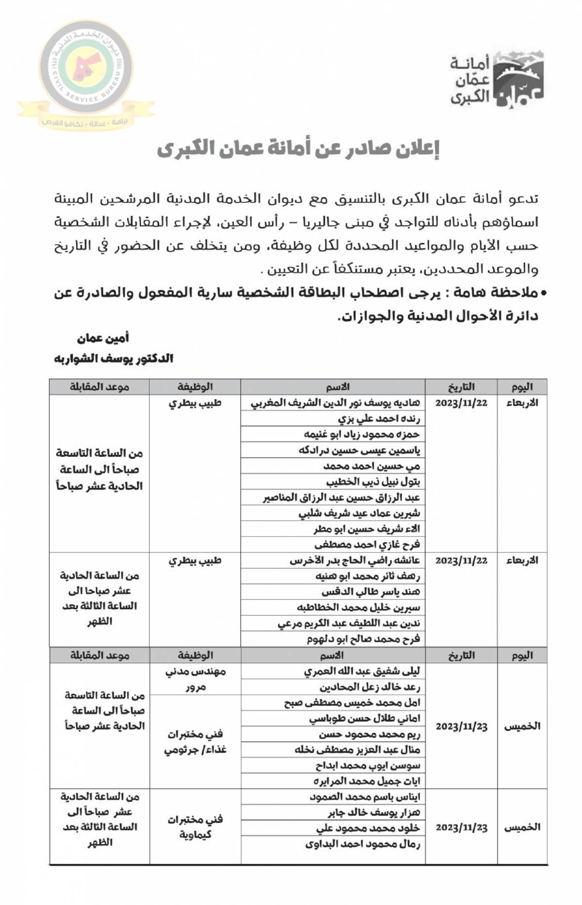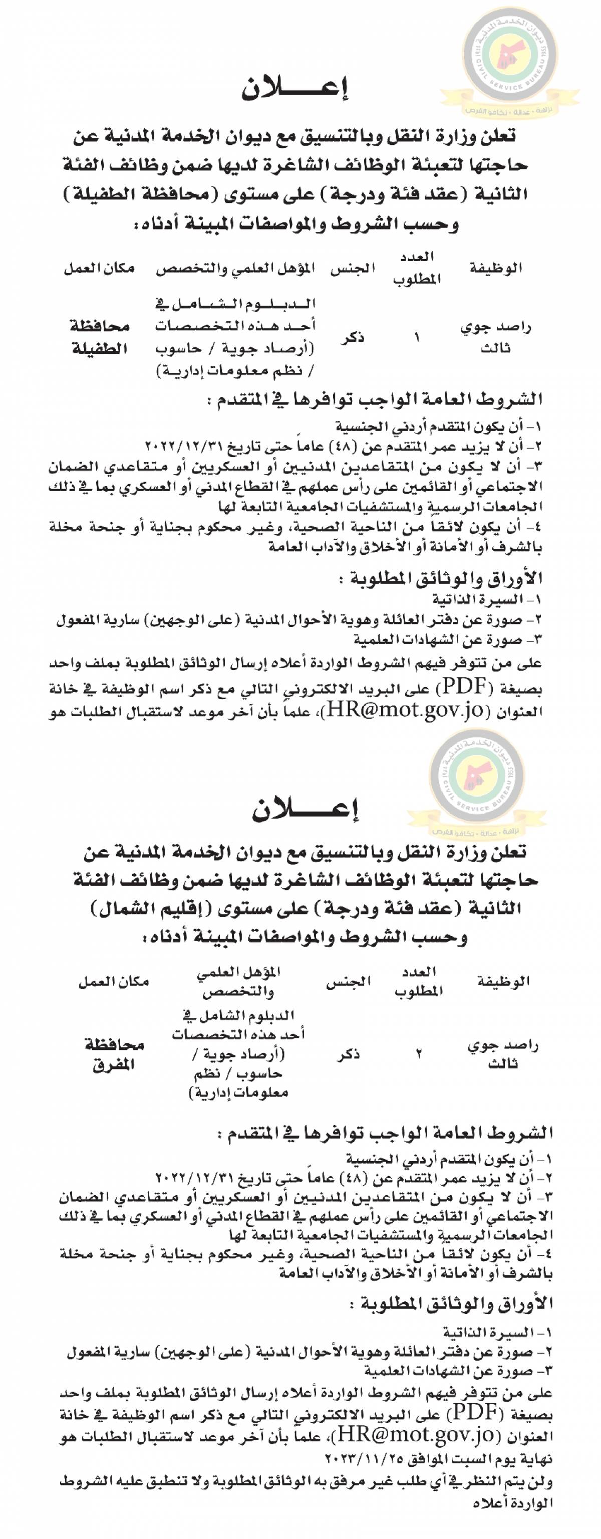 وأعلن عن وظائف شاغرة بالتنسيق مع الوزارات والمؤسسات الحكومية.