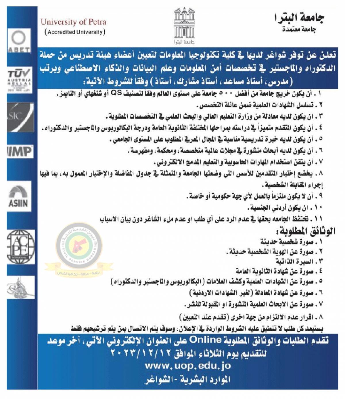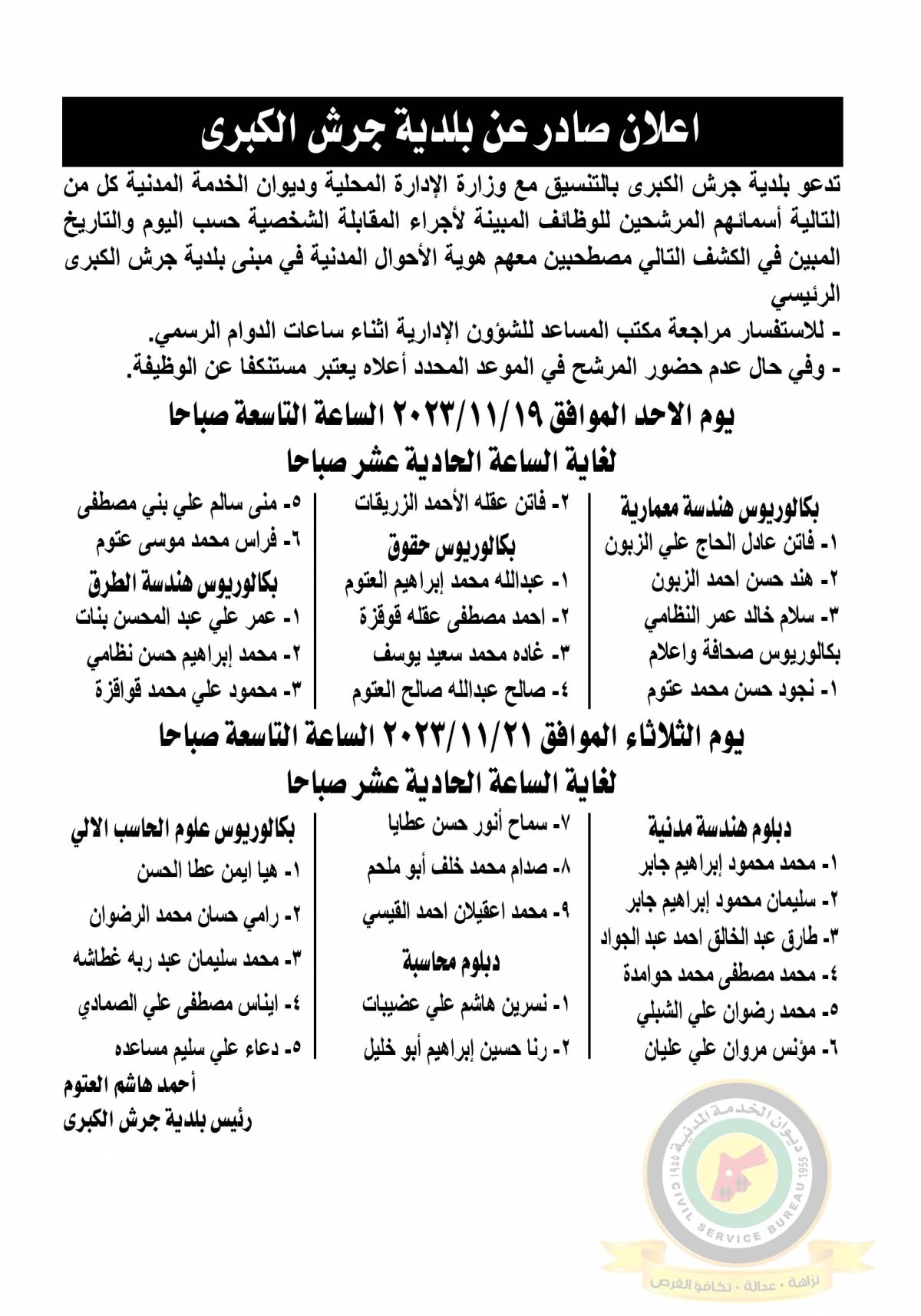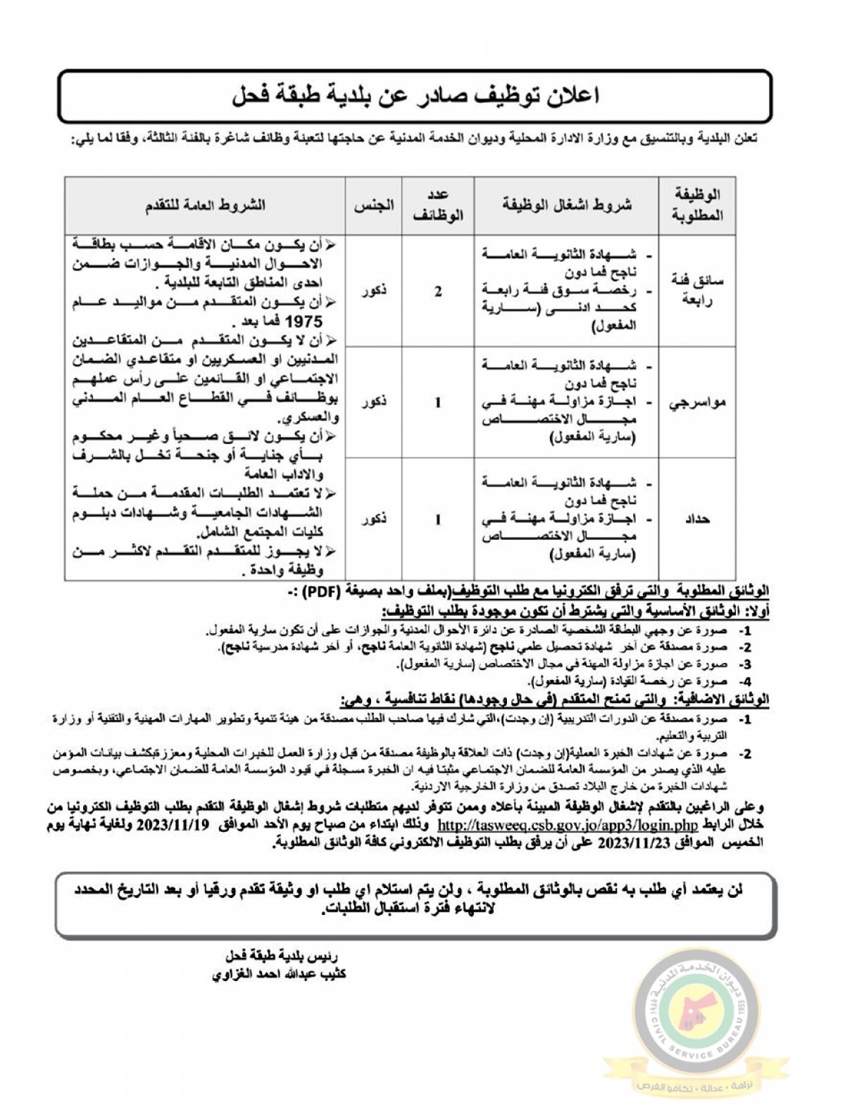 وأعلن عن وظائف شاغرة بالتنسيق مع الوزارات والمؤسسات الحكومية.