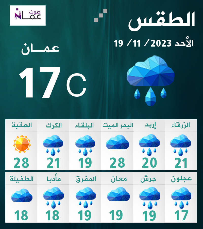 وتنخفض درجات الحرارة بشكل ملموس، وتصبح الأجواء غائمة جزئيا تتحول إلى غائمة وتهطل بفضل الله الأمطار في شمال ووسط الأردن.