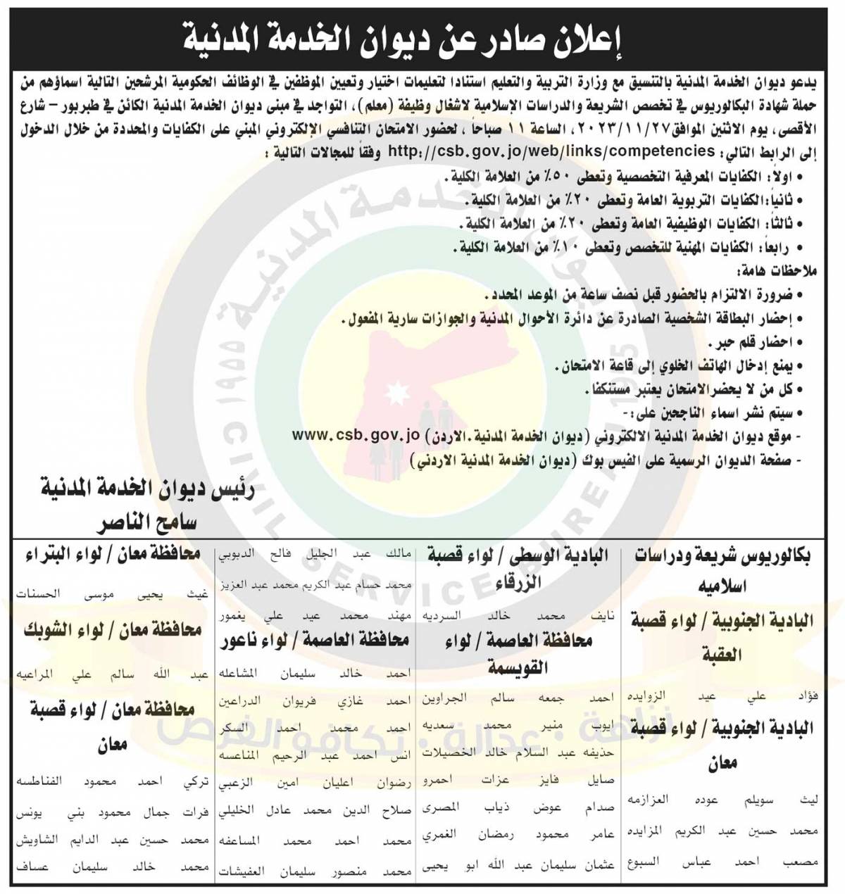 مدعوون لإجراء مقابلات شخصية والامتحان التنافسي (أسماء)