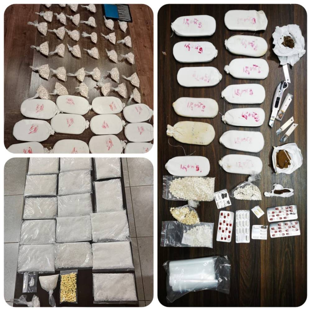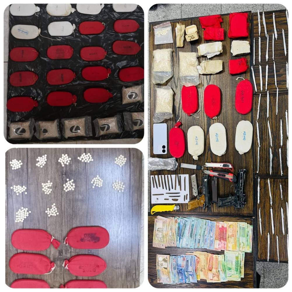 -في القضية الاولى جرى بعد جمع المعلومات حول احد تجار المخدرات، مداهمته والقاء القبض عليه وضُبط بحوزته 1 كغم من مادة الكريستال وكفان حشيش .