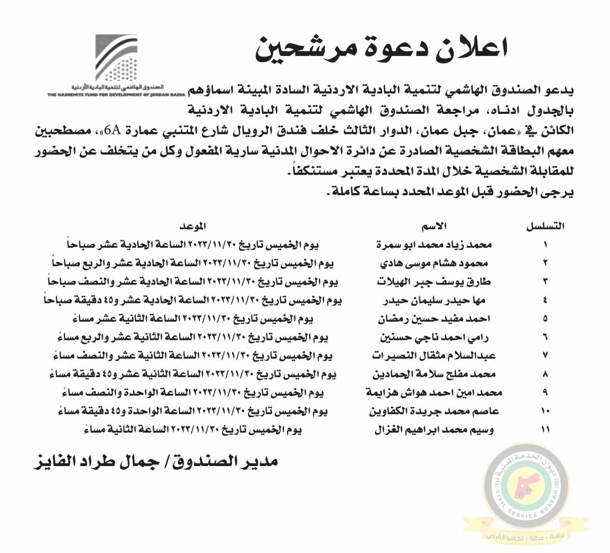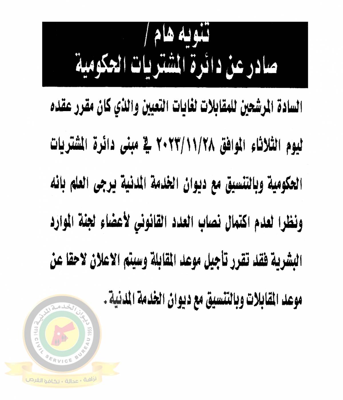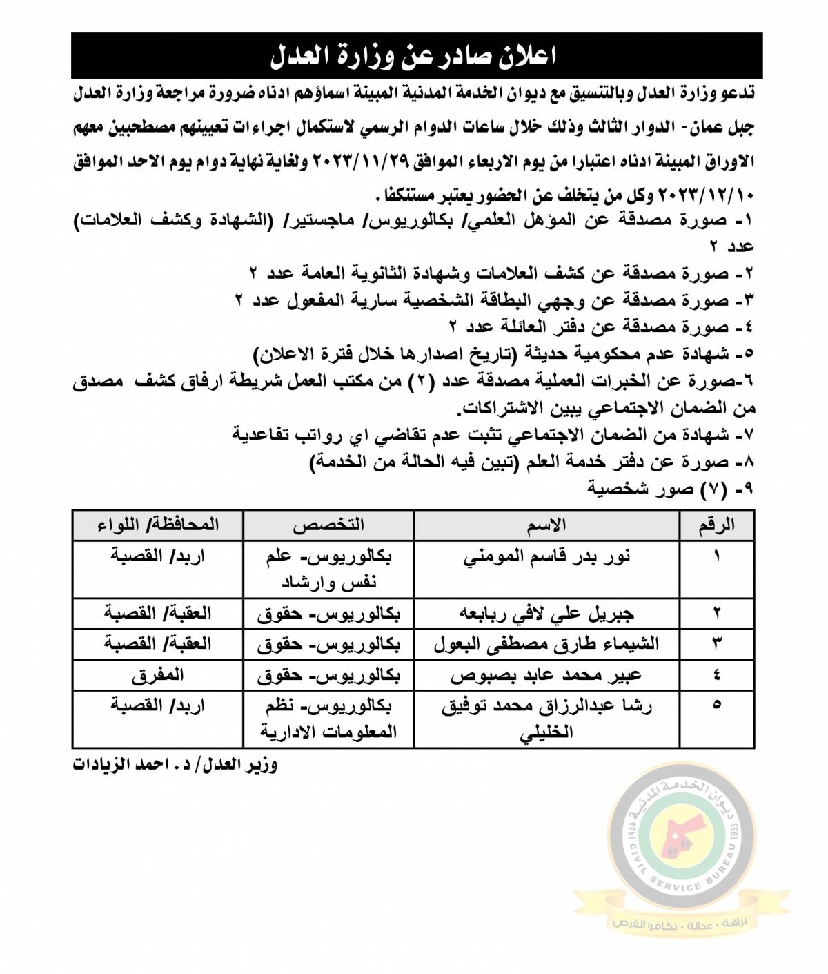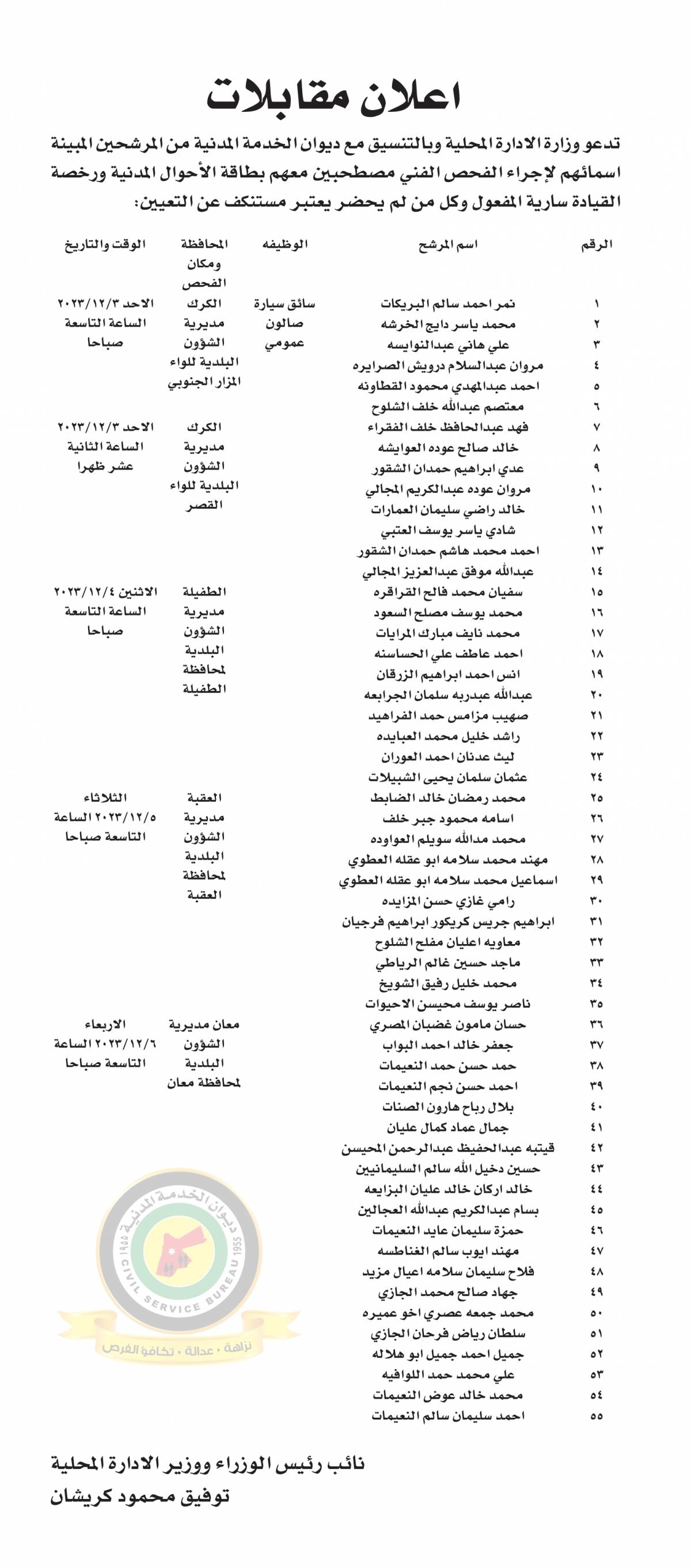 دعا ديوان الخدمة المدنية المرشحين المدرجة أسماؤهم أدناه لإجراء الامتحان التنافسي الالكتروني في عدة وزارات ومؤسسات حكومية .