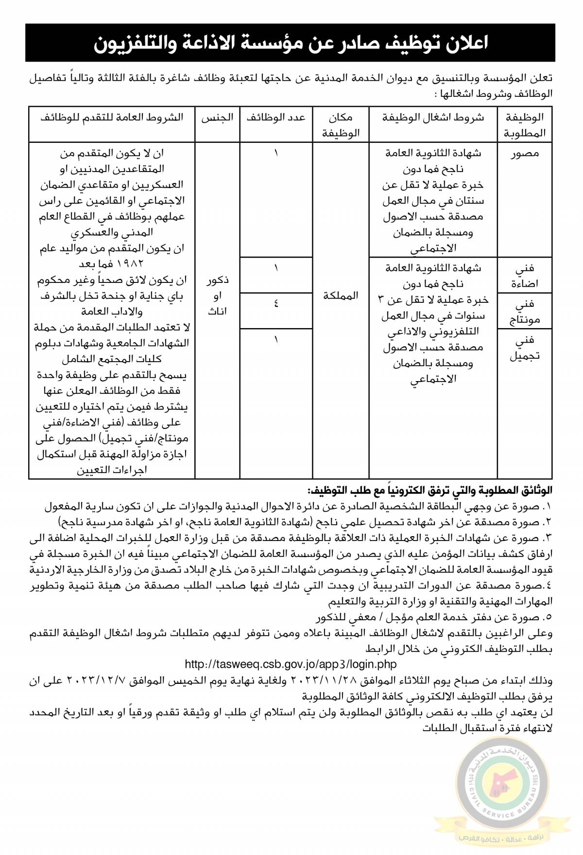 وأعلن عن وظائف شاغرة بالتنسيق مع الوزارات والمؤسسات الحكومية .