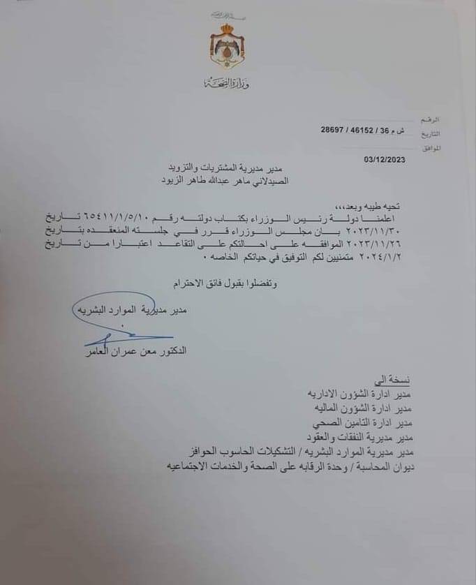 ووجهت وزارة الصحة كتبا إلى الموظفين المحالين الى التقاعد اعلمتهم فيه بقرار مجلس الوزراء.