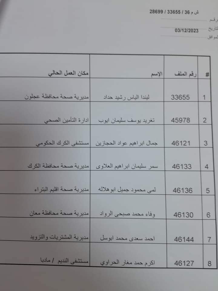 قرر مجلس الوزراء احالة 9 موظفي وزارة الصحة الى التقاعد اعتبارا من تاريخ 2/1/2024.