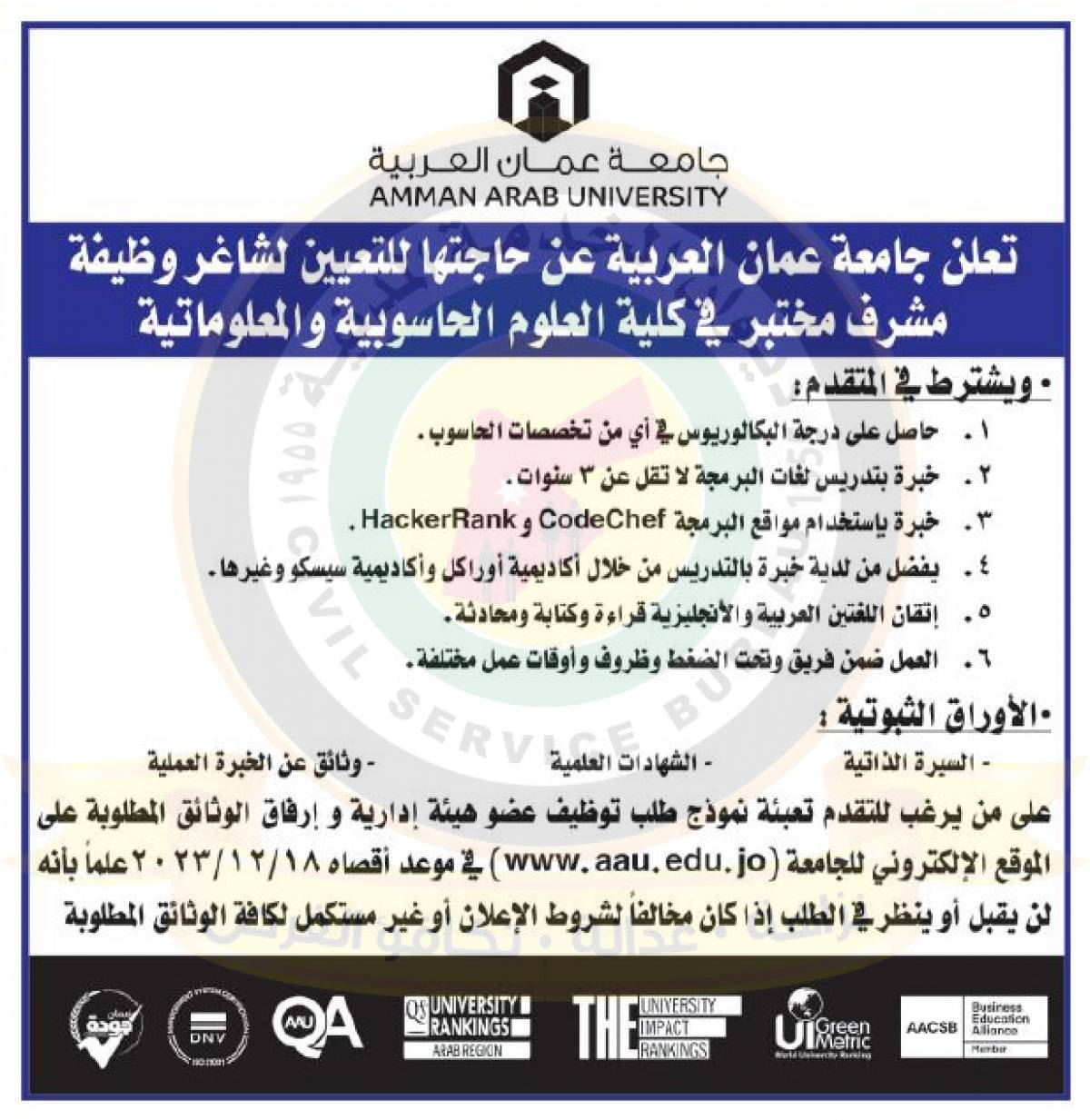 الإعلان عن وظائف شاغرة.. تفاصيل