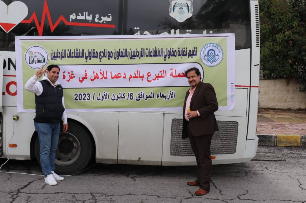 بالتعاون مع "نادي المقاولين" واسهاماً في دعم الجهود الوطنية والتكافل الاجتماعي في دعم الأهل في قطاع غزة، نظمت نقابة المقاولين، وبالتنسيق مع مديرية المركز الوطني لبنك الدم التابع لوزارة الصحة، حملة تبرع بالدم شارك فيها أعضاء مجلس إدارة نقابة المقاولين والعاملين وعدد من أعضاء الهيئة العامة، من خلال وحدة التبرع المتنقلة.