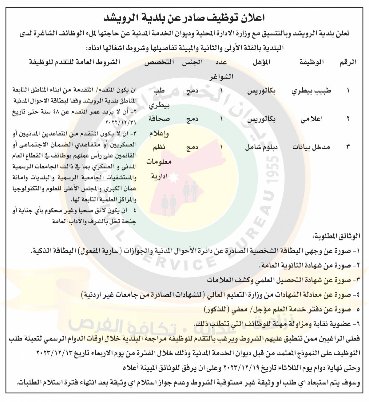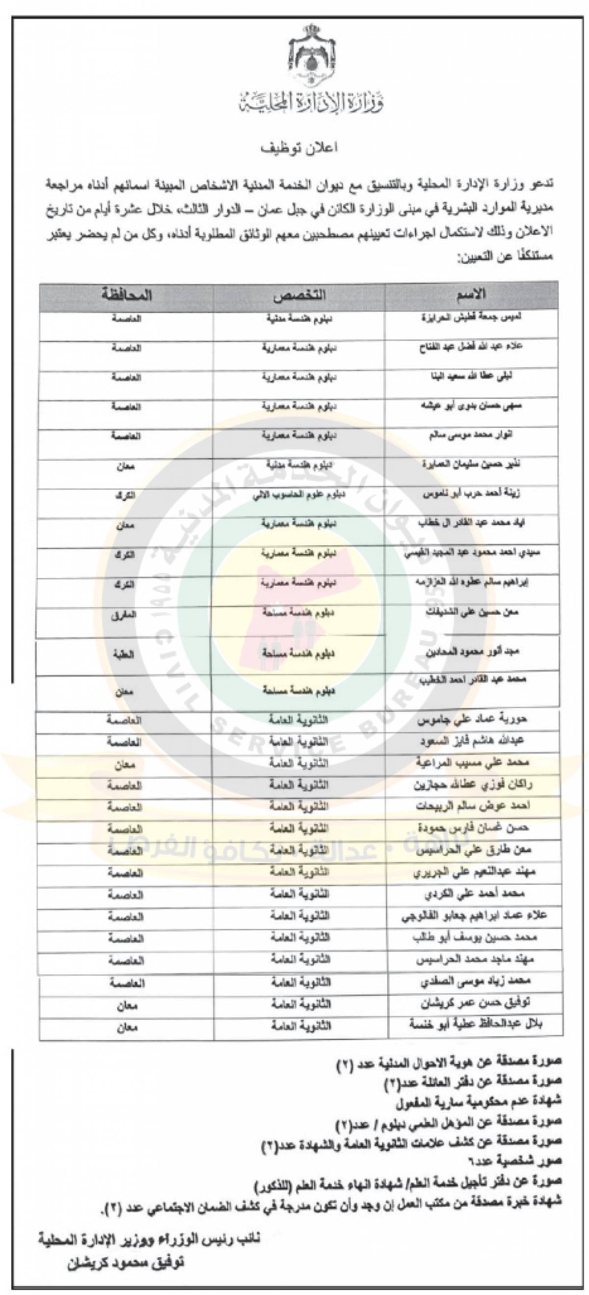 وأعلن عن وظائف شاغرة بالتنسيق مع الوزارات والمؤسسات الحكومية .