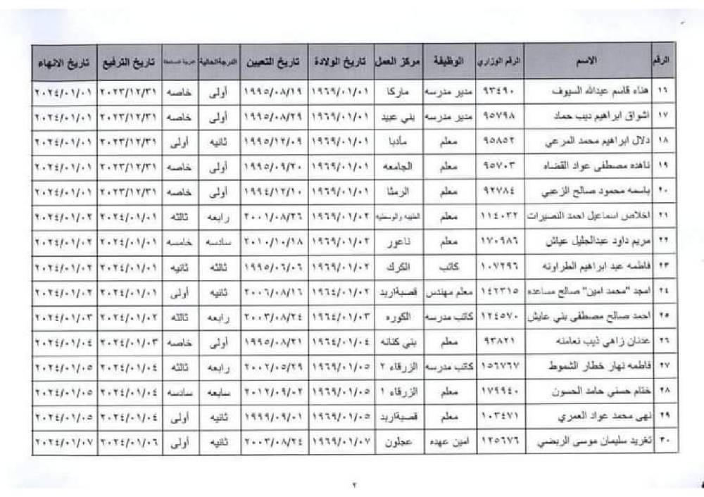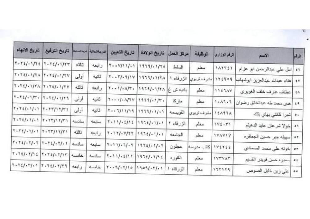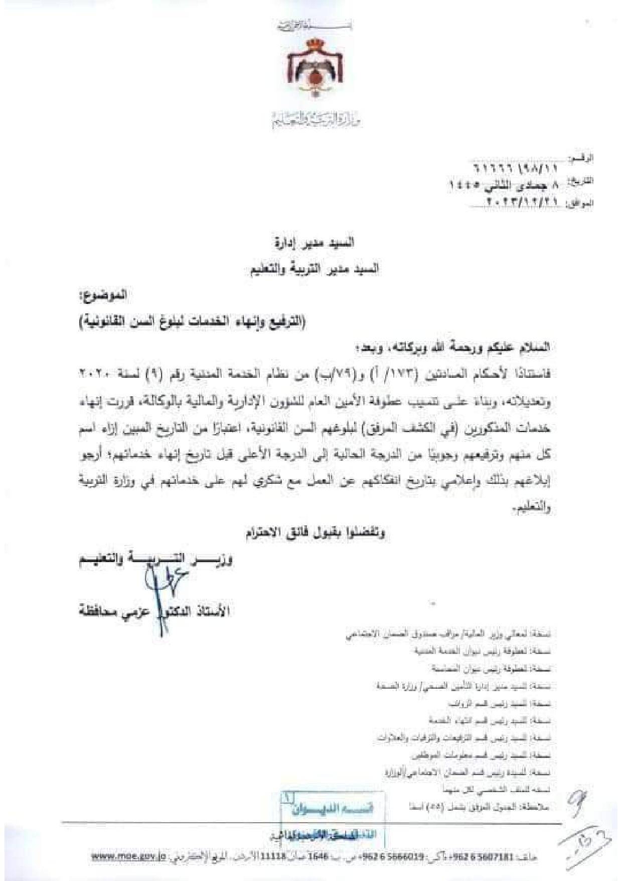 ترفيع وانهاء خدمات موظفين في وزارة التربية - أسماء