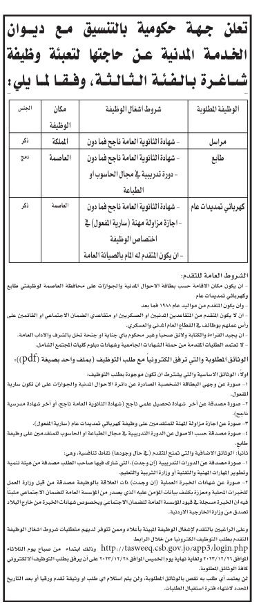 وأعلن الخدمة المدنية عن توفر وظائف شاغرة .