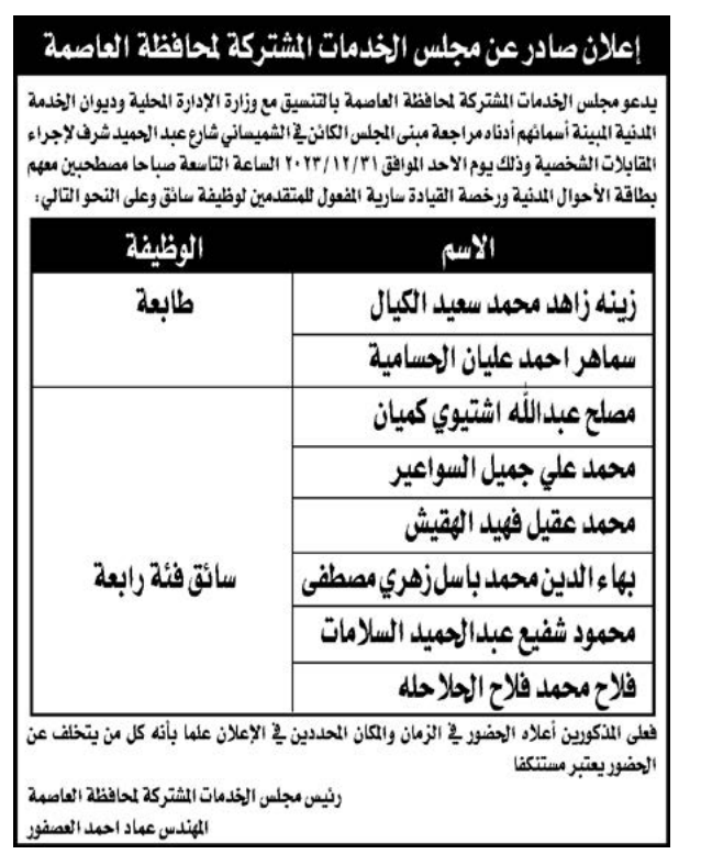 وظائف شاغرة ومدعوون لإجراء مقابلات شخصية - أسماء