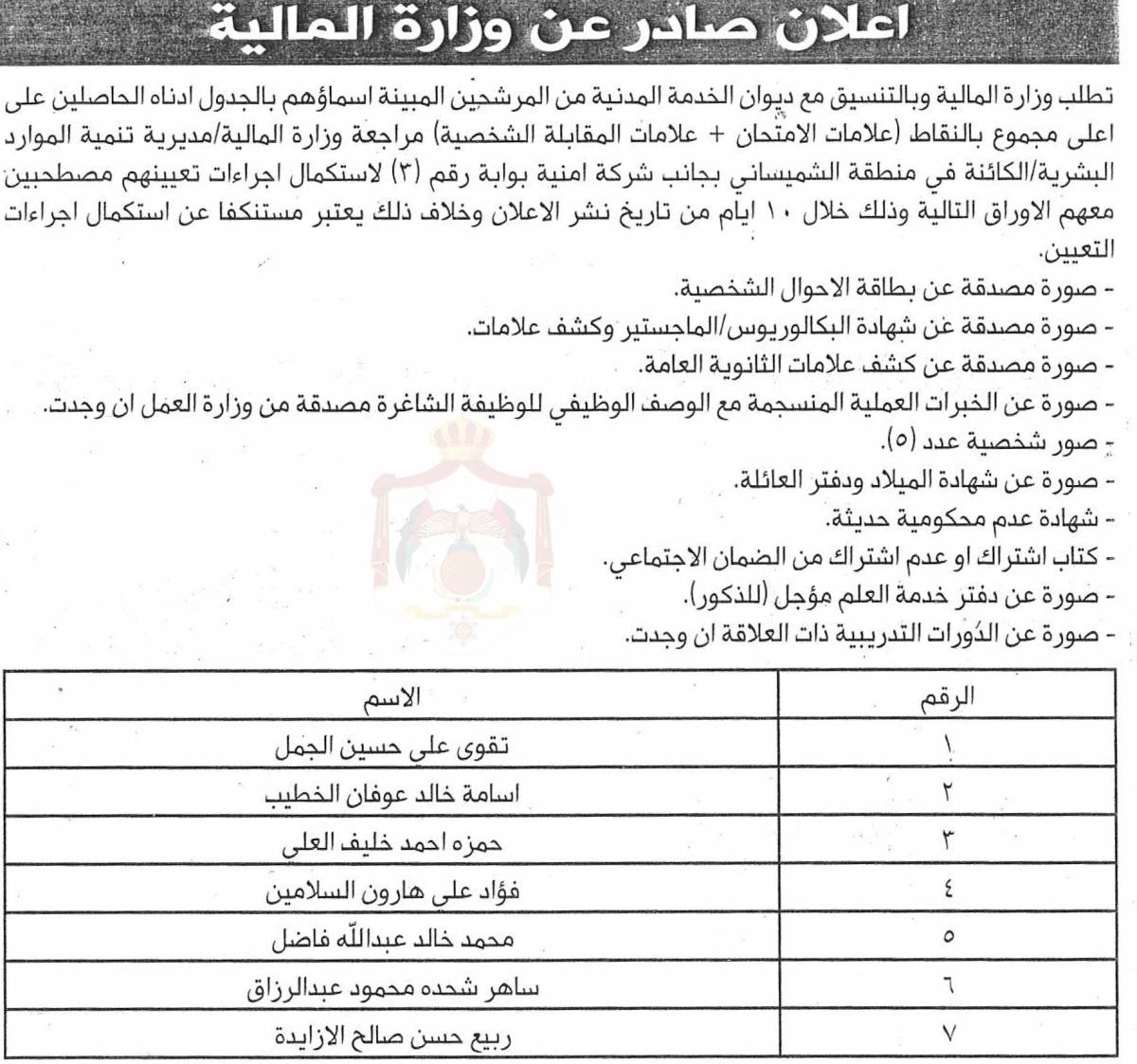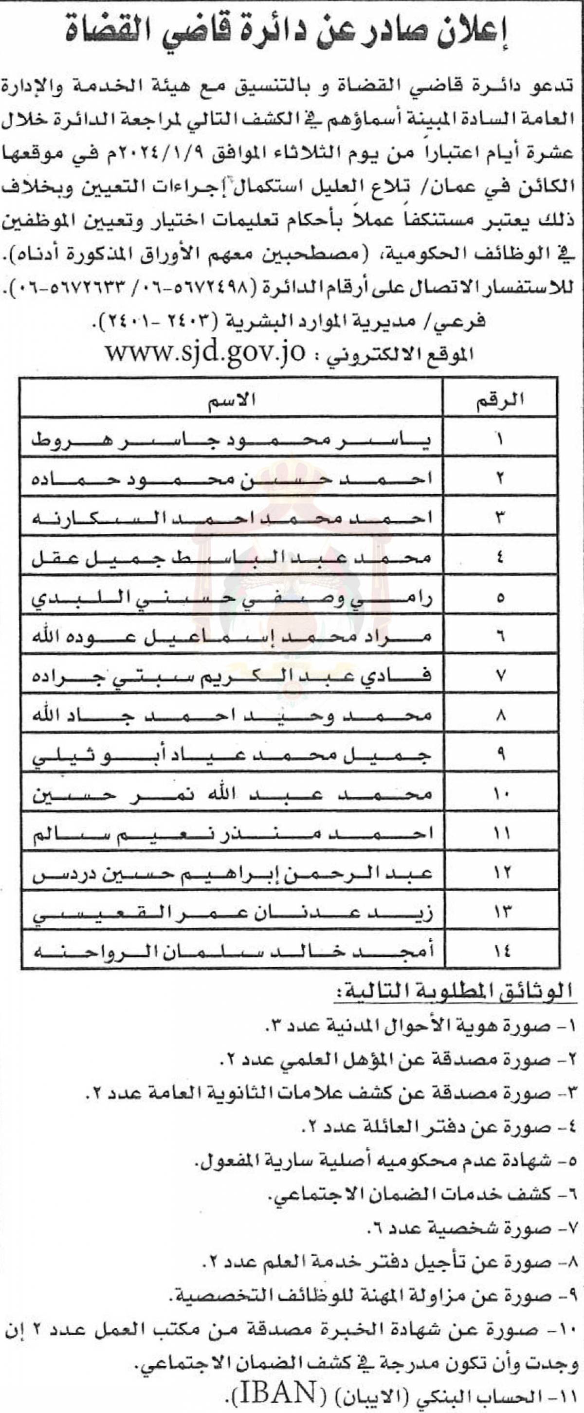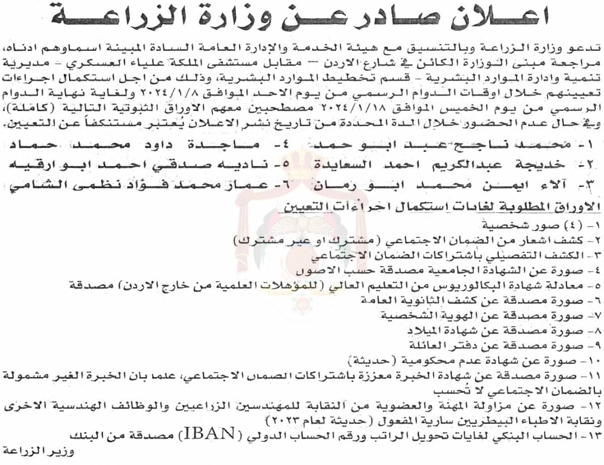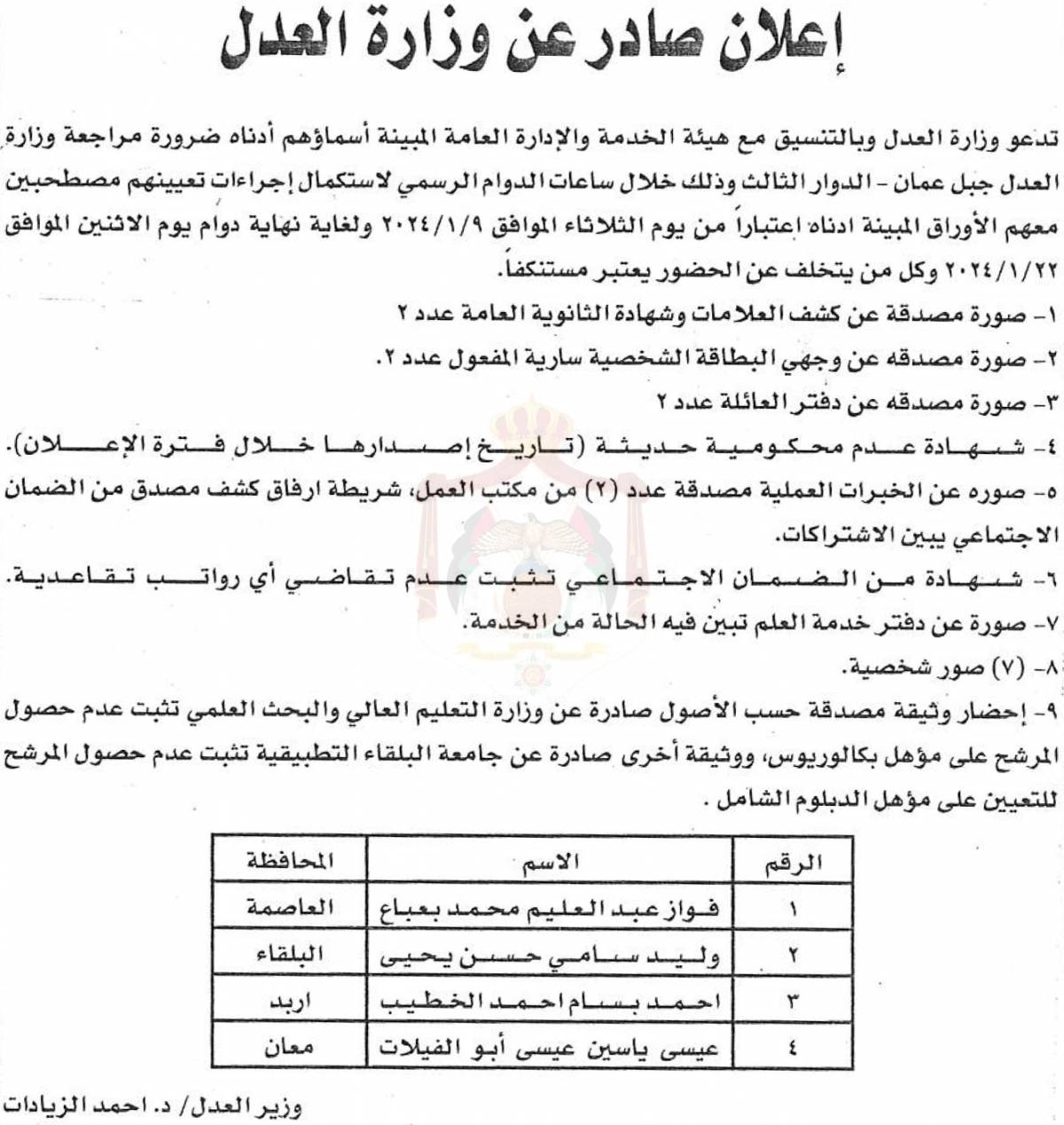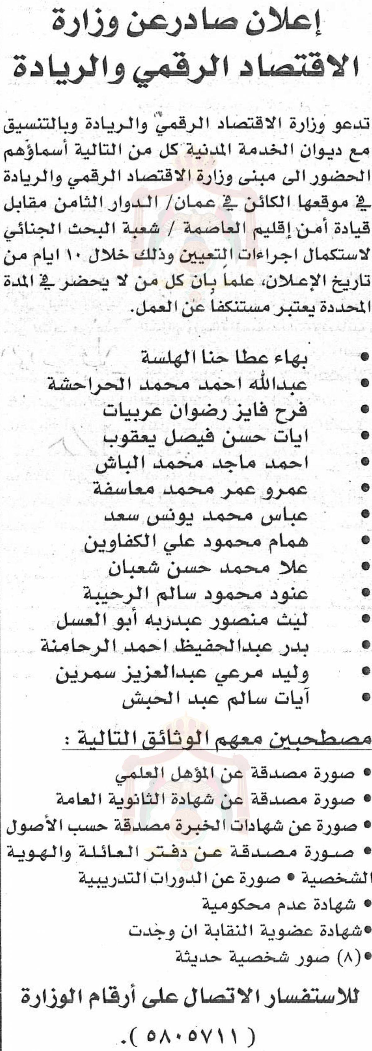 ودعت المدرجة أسماؤهم أدناه لاصطحاب الوثائق اللازمة للتعيين.