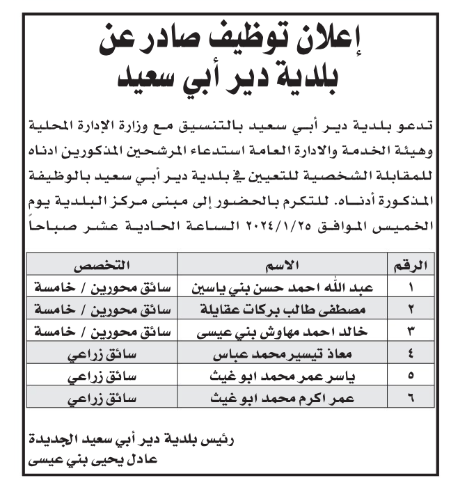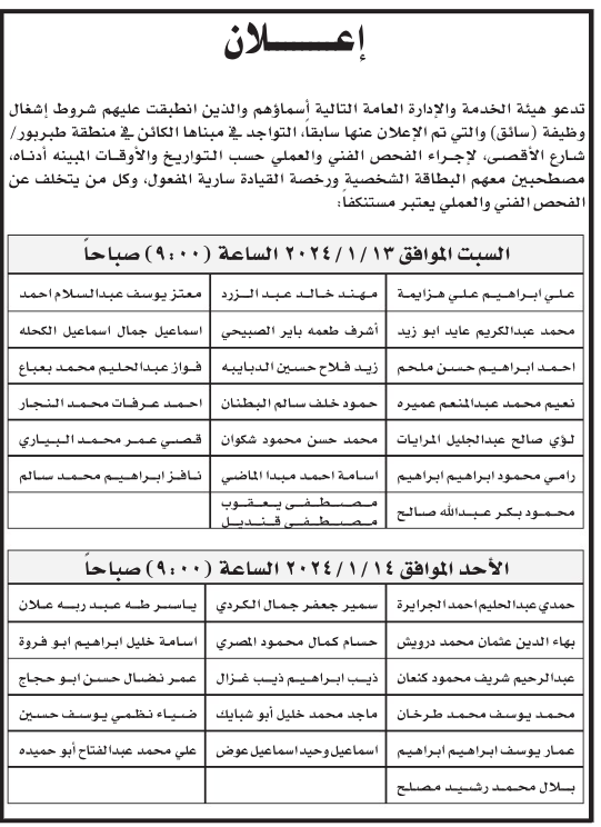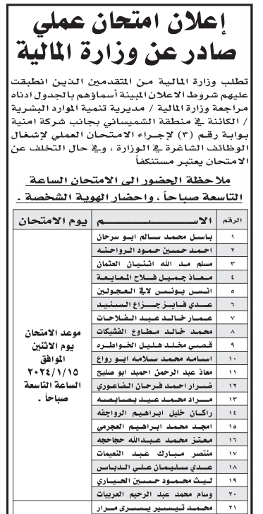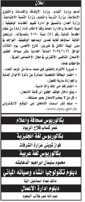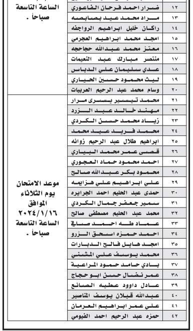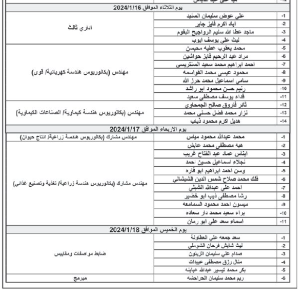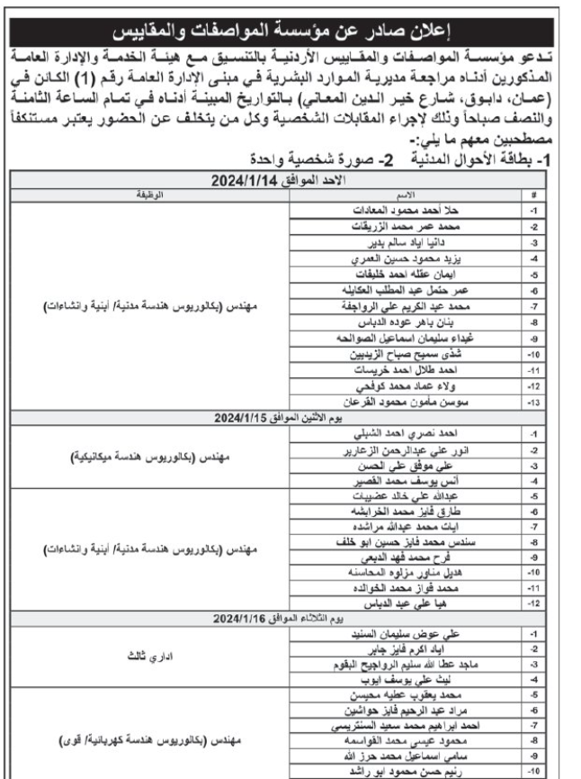 دعا ديوان الخدمة المدنية بالتعاون مع وزارات ومؤسسات حكومية، التالية اسماؤهم لإجراء المقابلات الشخصية لغايات استكمال اجراءات التعيين.