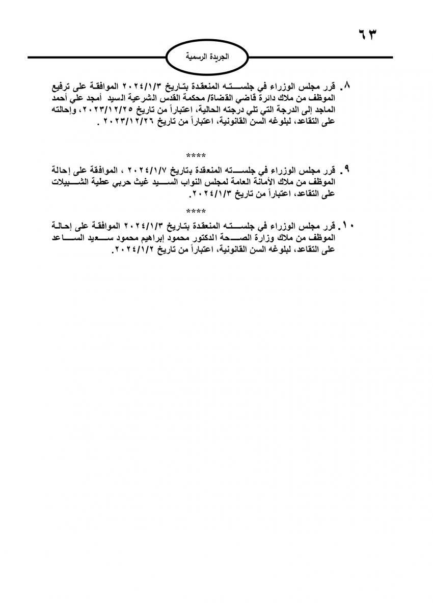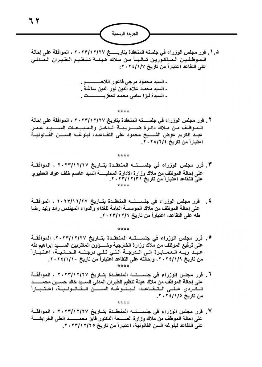 صدر في عدد الجريدة الرسمية اليوم الثلاثاء، قرارات مجلس الوزراء بإحالة عدد من موظفي الدولة إلى التقاعد، وانهاء خدمات آخرين.