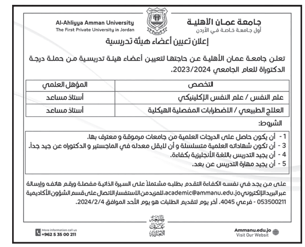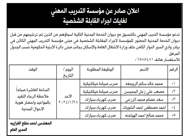 وظائف شاغرة ومدعوون للمقابلات الشخصية