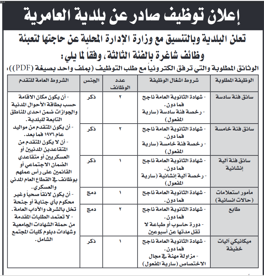 وأعلنت بعض المؤسسات الحكومية والخاصة، عن وظائف شاغرة.