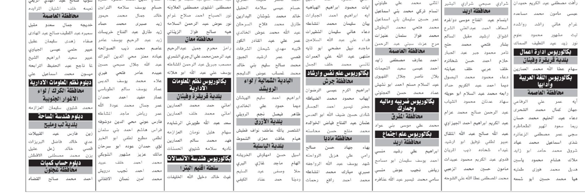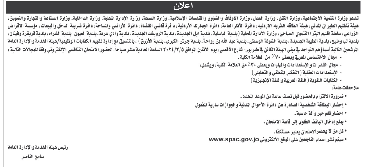 دعت مؤسسات ووزارات الأسماء التالية للامتحان التنافسي والتعيين .