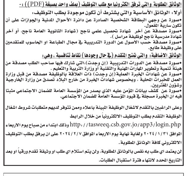 أعلنت عدد من الوزارات والمؤسسات الرسمية، بالإضافة إلى عدد من الشركات في القطاع الخاص عن وظائف شاغرة.