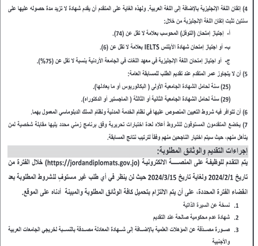 الخارجية تعلن عن إجرائها المسابقة العامة لاختيار ملحقين دبلوماسيين