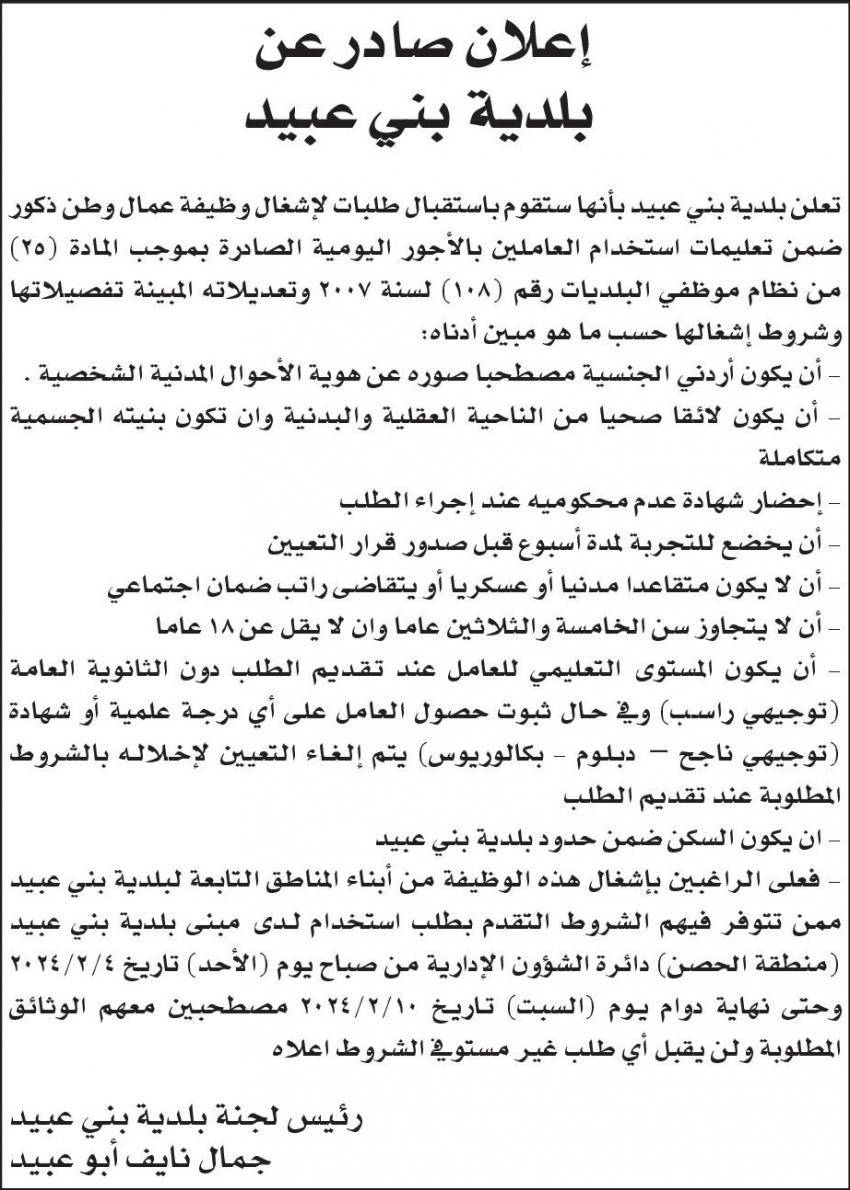 وكما أعلن عن عدد من الوظائف الشاغرة.